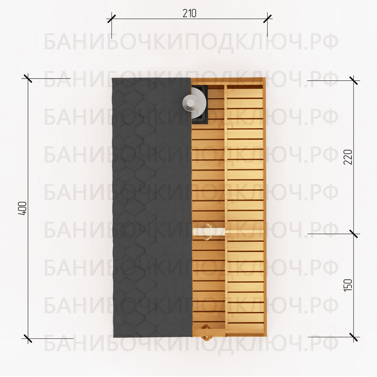 парилка - 220 см, предбанник - 150 см