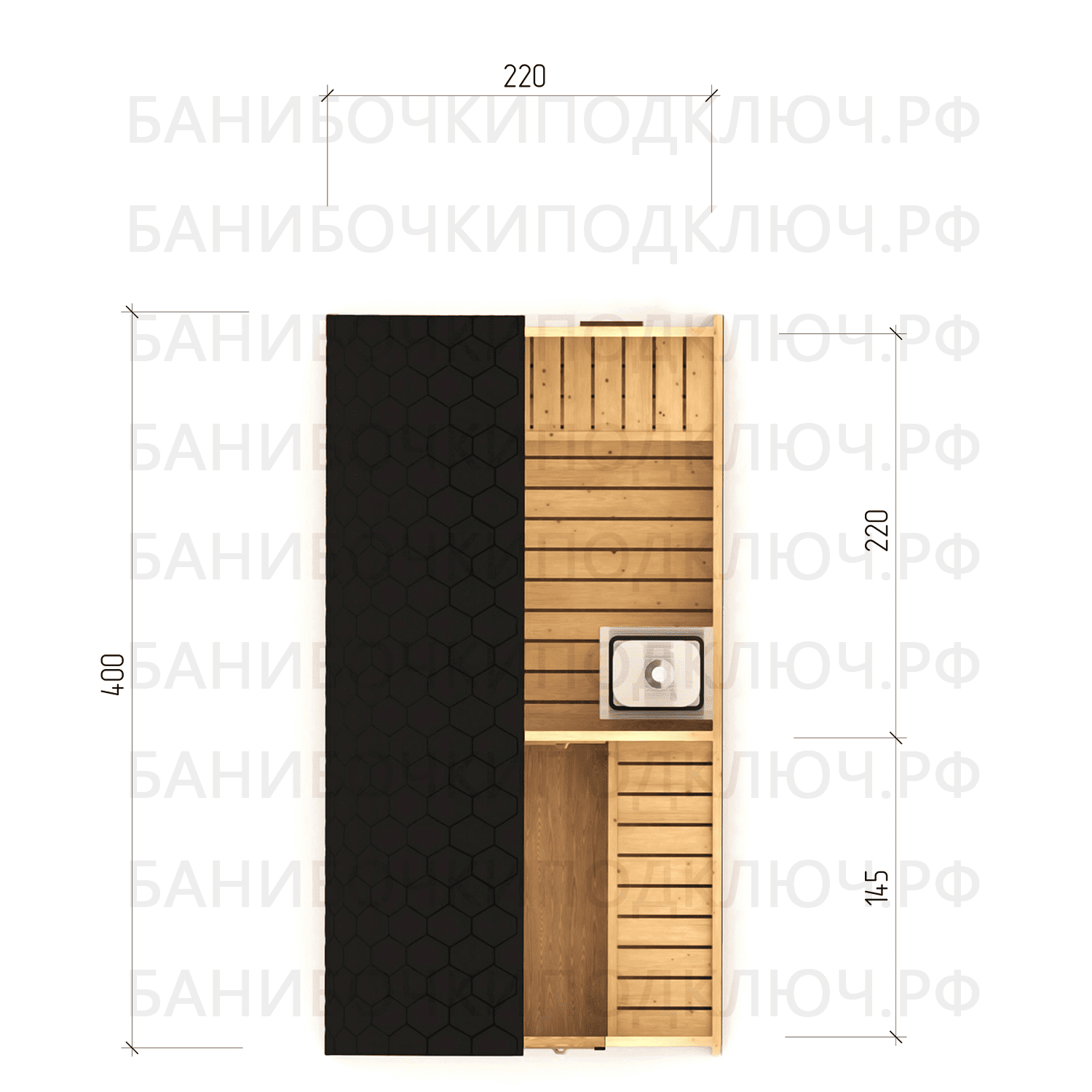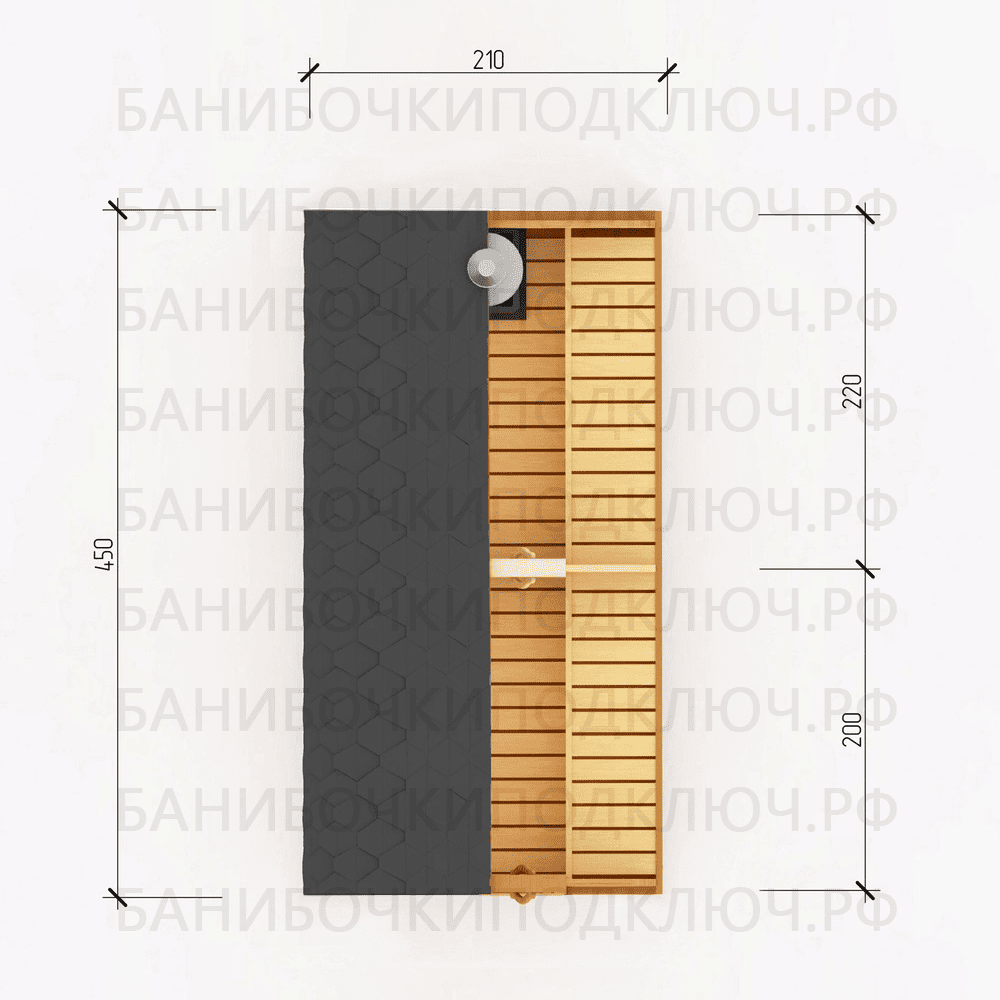 парилка - 220 см, предбанник - 145 см